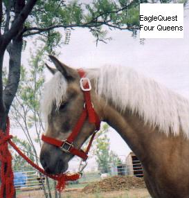 EagleQuest Four Queens The Queen is a perfect example of what a colorful Morgan should look like. She was recently purchased by Jane York of Sanger, CA. Look for this golden girl in the golden California sunshine! (Adiels Casino Gold X LSR Four Roses) |